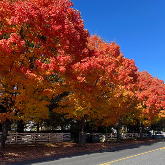 While driving to a soccer match the other day, I didn't have time to park the car and walk across the street to take a few photos, so I took photos on the fly. Since my driver's window was down, I put my phone in my left hand, aimed it at the trees, and snapped away until those maples while driving, and they were clear out of sight. I giggled in thinking...an autumn drive-by!