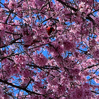 On closer look (and through the camera lens), as I've never seen before, bees had their "noses in the nectar." A few cardinals and other birds were screeching so loud that I thought they must be pleased to have all that budding activity with flora and fauna. It was an odd morning with a temperature swing of at least 25 degrees in an hour or two.