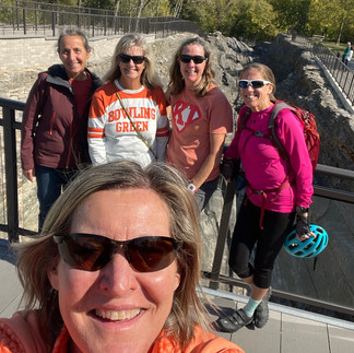 The blessing in this detail is the deepening of our collective friendships. We caught up on travels, kids and grandkids, hiked, biked, dined, shopped, and cooked. I must add that Kelleys Island only has a few restaurants and we went to two shops. Two of us brought dinner meals to feed all of us. On Friday and Saturday, we were on our bicycles to see the sights and sounds of the island - a lot was going on for this past weekend in October. The temperatures were mild enough, and the sun was usually shining. I was the only one (thank goodness) who got a flat tire on a bike borrowed from Jodie, and we were not too far from home. Jodie was able to swap out the disabled bike with a beach cruiser (I had to keep reminding myself to use my feet to turn backward on the pedals to break since it has only one gear!).